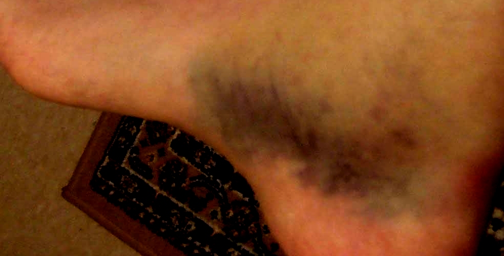 Через некоторое время после того, как сбила машина, кровь из повреждённых - чуть ниже и чуть выше колена - сосудов стала (внутренне) стекать к стопе, примерно через сутки образовав огромную гематому. На двух снимках можно видеть а) начальный этап накапливания крови - в районе стопы - из выше проходящих сосудов; б) более позднюю картину (самые ужасные снимки не приводятся - чтоб не пугать читателей). Легко могло случиться и так, что сгустки крови могли по кровеносной системе дойти до сердца, и тогда - смерть...