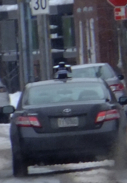 Таким образом, когда одни и те же машины такси появляются в разных концах Монреаля, и даже за его пределами (в Лавале): это уже само по себе ЧП. Но ведь они оказались в поле моего зрения отнюдь не потому. (Я бы их никогда не заметил и не выделил из общего потока движения). Эти машины "подсекали" в ключевых, узловых точках: на мостах или в туннелях под мостами, на подходе к переходу через канал, или на выходе из метро, или когда я садился в автобус (выходил из него). Но даже в таких случаях я редко фотографирую цивильные машины, ограничиваясь запоминанием или записью номера. Для того чтобы я сфотографировал машину такси, в полной уверенности о её полицейских функциях: на это должны быть особые причины.
