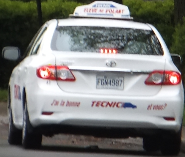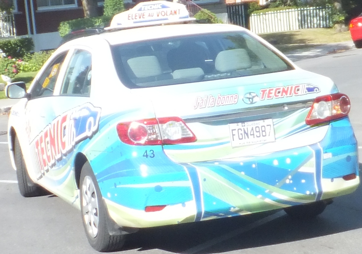 Ещё более удивительные вещи происходили и происходят с машинами школы вождения Техник. Мало того, что эти машины буквально "ведут" меня в любой точке города, словно вызвались сопровождать, они ещё используют сменные номера. Так, одна и та же белая Тойота этой школы с номером FGN2786, с одним и тем же водителем и с той же отметиной на боку, появлялась также и под другим номером: F...5987. Машины одной и той же школы вождения, как и такси, не могут "просто так" колесить по всему городу, возникая в любой его точке, а, тем более, шнырять за пределами Монреаля. А между тем, указанная машина с двумя номерами, один из которых (или оба) фальшивый, "подсекала" меня одного на пеших прогулках, или нашу машину и на Салабери, и в Лавале, и в Понт-Клер, то есть в совершенно разных концах Монреаля и за его пределами.