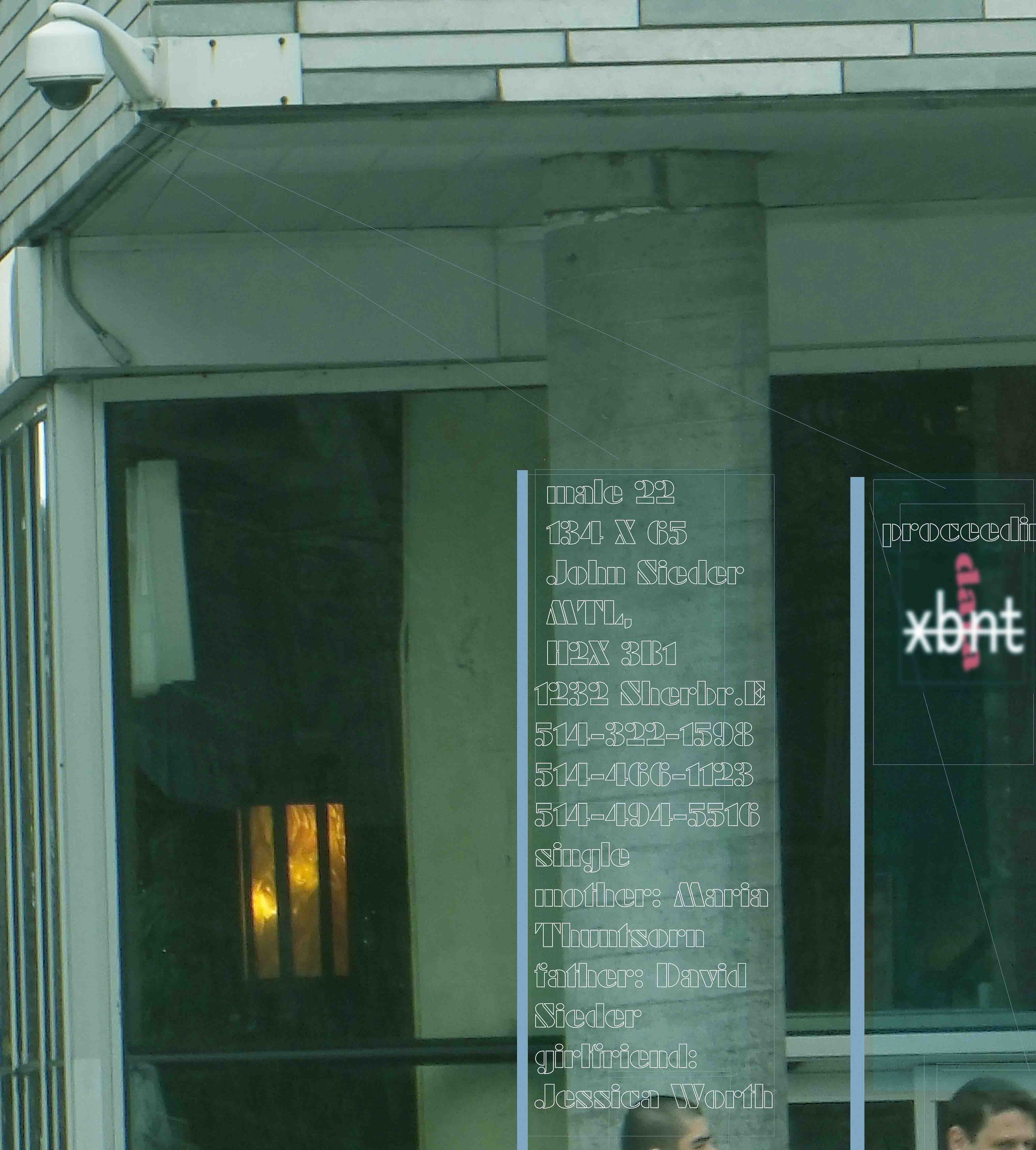 Соединение с базой данных и системой распознавания лиц. Ещё в начале 2001 г. в канадском городе Торонто (провинция Онтарио) в патрульных машинах полиции были установлены компьютеры с выходом на электронные базы данных, где представлены уже не только уголовники, но все граждане, и упомянуты не только паспортные данные, но информация обо всей суммарной деятельности людей (включая записи с камер "безопасности", покупки, любовниц, друзей, и т.д.). Система этой информационной сети называется e-Cops (Enterprise Case and Occurrence Processing System), использует беспроводное соединение портативных компьютеров в полицейских патрульных машинах с сетевой базой данных (Marron, 2001). В эту базу данных стекаются сведения из Министерства Транспорта Канады, информационного Центра Полиции Канады (CPIC), из медицинских учреждений, социальных служб, а также из баз данных шпионящих за гражданами страховых, охранных, маркетинговых, и прочих компаний. Примерно с 2004 г. эта система была распространена на все крупные города Канады. В отдельных системах или городах громадные электронные базы данных с опцией поиска, с информацией о миллионах граждан, никогда не сделавших ничего плохого, уже в 1999 г. были соединены с изображениями людей, схваченных оптикой камер, и хранились в цифровом формате. Где с 1999, а где с 2000 г. они были дополнены технологией распознавания лиц. К примеру, в районе Лондона Newham полицейские камеры CCTV уже в 1999 г. были соединены с системой распознавания лиц (Norris and Armstrong 1999). В 2000 г. такие системы появились во Флориде. Такие совершенные и сложные системы камер "безопасности" CCTV, как в Newham (London), соединённые с базой данных и с программой автоматического распознавания лиц, используются, чтобы "вести" человека от улицы к улице, от квартала к кварталу, переводя его изображение на монитор с разных камер, к которым он в данный момент приближается. Если, скажем, интересующий оператора человек проходит 4 квартала по улице А, потом сворачивает налево, и проходит 2 квартала по улице Б, на нём фокусируют свои злобные зрачки каждая из, скажем, 48 камер, установленных на этих 6 кварталах. Как только миновал одну камеру (скажем, ЕД348), и приближается к другой (ЕД349), изображение на монитор переводится уже с неё. Как только cвернул за угол, там его "схватывает" уже другая камера. Полиция, мафия, спецслужбы, промышленный шпионаж корпораций могут использовать для этой цели не только полицейские камеры, но и камеры магазинов и других частных бизнесов. Вот что указывает по этому поводу академическое (частично государственное) новозеландское исследование (March 2009, Wellington, New Zealand | i s s u e s p a p e r 14 | Invasion of Privacy: Penalties and Remedies Review of the law of Privacy, stage 3): "Кроме того, полиция и другие правоохранительные органы могут использовать информацию, полученную надзорным видеонаблюдением, ведущимся другими субъектами или организациями. Например, полиция имеет доступ к видеокамерам CCTV, которыми оперируют местные власти или частные бизнесы. В Новом Южном Уэльсе полиция учредила принудительную регистрацию камер наблюдения CCTV, с расчётом (...) получить неограниченный доступ к снимаемому видеоматериалу (...)". В настоящее время в Великобритании и Канаде (по-видимому, то же самое и в США) полиция "смотрит" в частные видеокамеры в реальном времени, через них отслеживая социальных, политических, идеологических, либо других активистов, антикорру